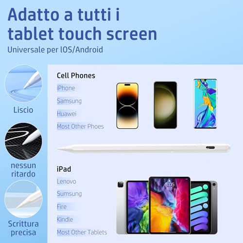 - Extremely precise: upgrade 1.5 mm fine tip, highly precise touchscreen pen, no cracks, no interruptions, no delays when writing, tablet pen for all tablets that offers a smooth writing experience when drawing, writing, writing or marking. (NOTE: Please do not use it while the tablet or pen is charging, as the charging current will affect the pen signal).