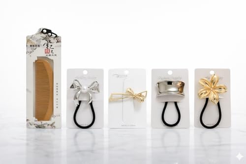 - What's in the set: Set includes 5 assorted pieces - Natural Wooden Comb and 4 Hair Bands embellished with Elegant Metal Designs