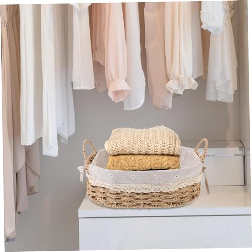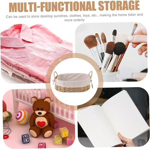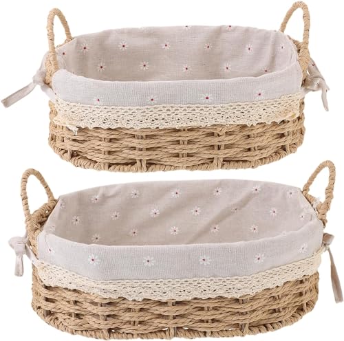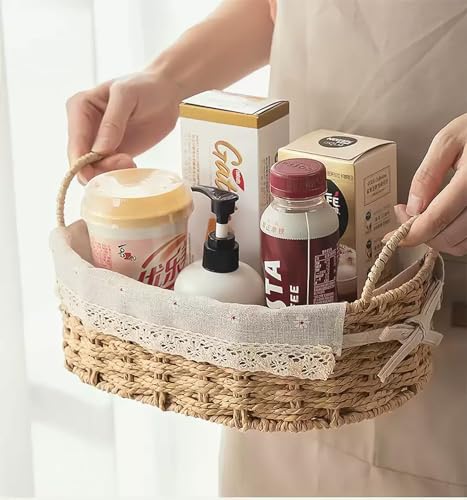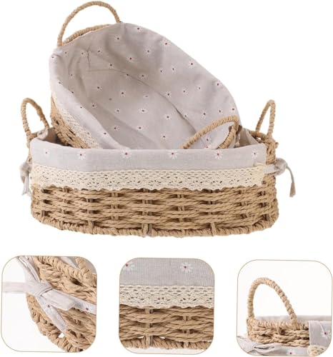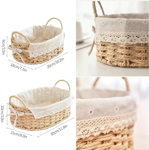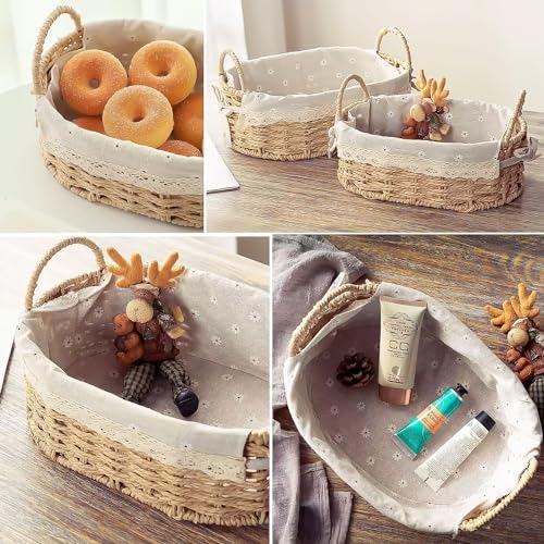 TAME - TAME Wicker Baskets with Liner, Rattan Baskets Organizer for Shelves, Small Decorative Wicker Baskets for Home Decor, Back of Toilet Storage Basket for Organizing, Set of 2 (Oval- beige)
