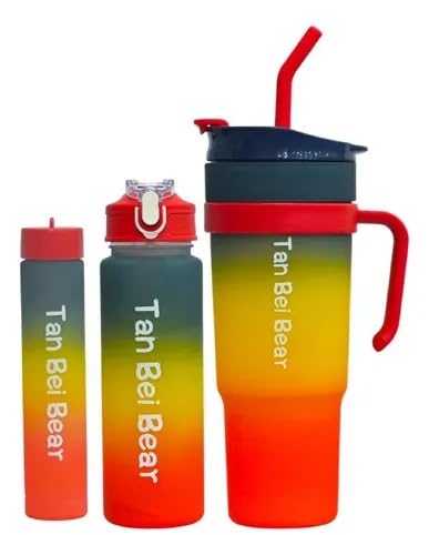 Generic - Tan Bee Bear Gradient 3 Piece Tumbler Set with Lid and Straw, Red and Yellow