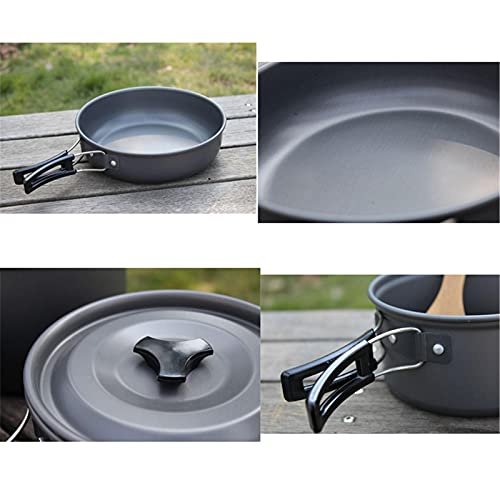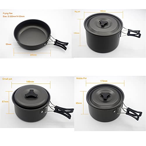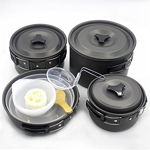 TANGIST - طقم أواني طهي للتخييم من الألومنيوم خفيف الوزن من تانجيست مع أغطية بفتحات تهوية وشنطة ظهر قابلة للطي للمشي لمسافات طويلة غير لاصقة للطبخ والنزهات في الهواء الطلق للعائلة، 14 قطعة، أسود