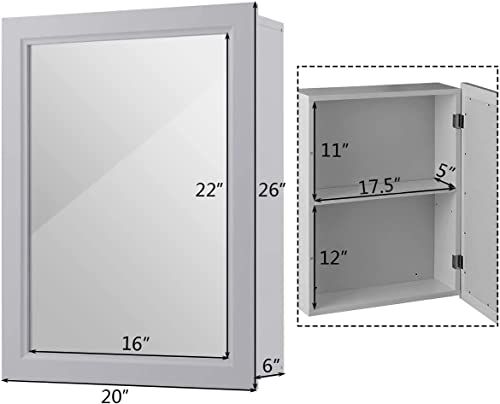 - 【Ideal Option for Ample Choice】What if you don't have enough storage, this mirror cabinet is your perfect option. The wall mounted design, which saves valuable floor space. Plus, adjustable shelf in cabinet provide flexible and abundant space. And it is ideal for storage towel, paper roll and other supplies and give you a clean bathroom. The door with mirror not only protect privacy but keep humid and dusty out.