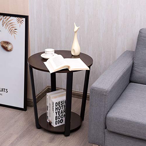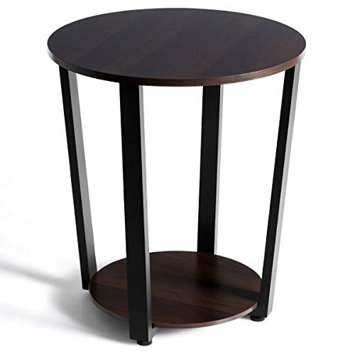 Tangkula - Tangkula Round End Table, 2-Tier Metal Sofa Table with Storage Shelf, Round Side Table with Metal Frame, Industrial Style Accent Furniture for Home Living Room Bedroom (1, Espresso)