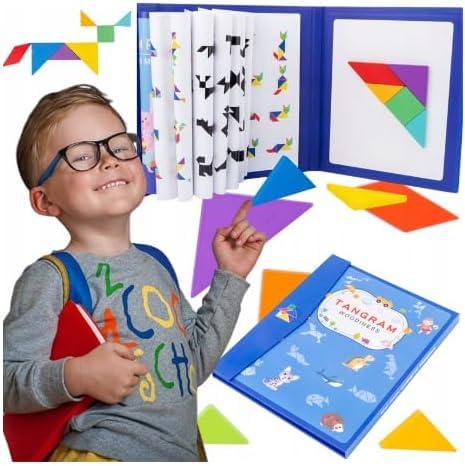 - Tangram educational toy: wooden learning book with colorful tangram pieces to develop kids' intelligence and logical thinking