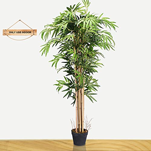 TANGZON - شجرة صناعية من تانجزون 1/ 1.2/ 1.5 متر، نبات خيزران طويل وكبير/ شجرة اللبخ الصناعية/ شجرة نخيل صناعية في وعاء مع اوراق 28/504/1095، نباتات ديكور خضراء داخلية للمنزل والمكتب (150 سم، اخضر)