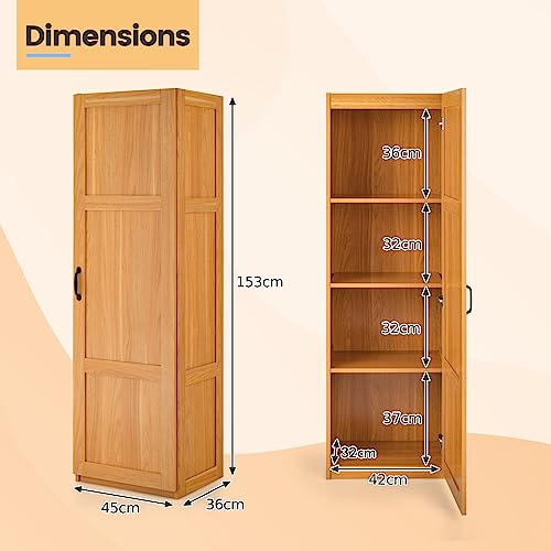 TANGZON - TANGZON Tall Kitchen Cupboard, 153cm Storage Cabinet with 4-tier Shelving, Door & Anti-tipping Devices, Freestanding Wooden Sideboard Organiser for Dining Living Room Pantry Entryway