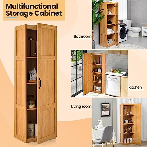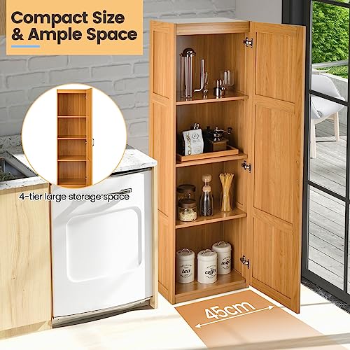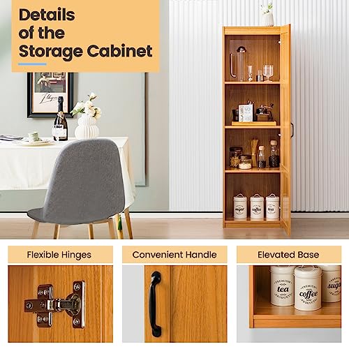 - VARIOUS STORAGE SPACES: The tall kitchen cupboard has 4 storage shelves, providing ample storage space for kitchen supplies, such as dishes, spice bottles and small appliances. You can close the door to not only protect your privacy but also prevent dust from entering.