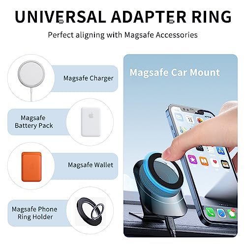 - 📱 حلقة محول عالمية: سيضيف ملصق ماج سيف مغناطيسيًا ويطور جراب هاتفك لمحاذاة سريعة ومثالية مع شاحن ماج سيف اللاسلكي، حزمة بطارية ماج سيف، محفظة ماج سيف، حامل حلقي للهاتف المغناطيسي، حامل مغناطيسي للسيارة، يزيد من الشفط ويبقى ثابتًا