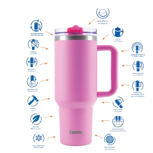 Tank - Tank Quencher, 1200ml, Stainless Steel Bottle, BPA free, Insulated, Leakproof - Hot Pink