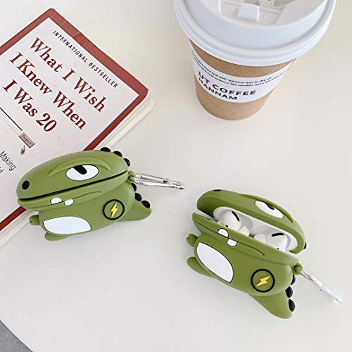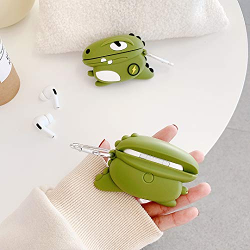 Tanmay - جراب حماية لسماعات ايربودز برو من السيليكون الناعم، بتصميم كرتوني لطيف ورائع ثلاثي الأبعاد مع سلسلة مفاتيح، تصميم ديناصور من تانماي