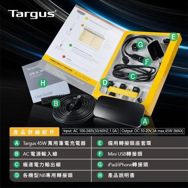 Targus - Targus Universal 45W Netbook Charger, 7 Interchangeable Tips, Compatible with Multiple Laptop Brand