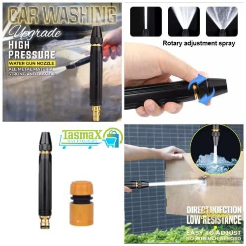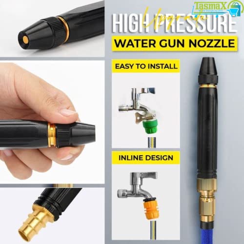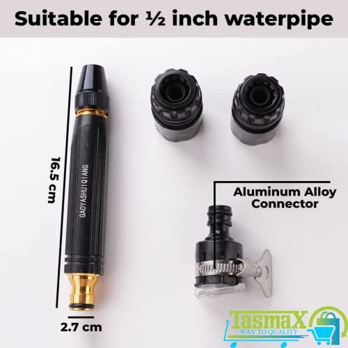 TASMAX - TASMAX Jet Spray Gun for Car Wash, Gardening, Home Garden, High Pressure Water Gun, Brass, 1/2 Inch, Compression, Black Hose Nozzle