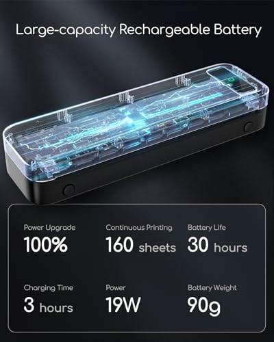 - Mini portable printer: up to 160 thermal sheets (format 8.5 x 11 inches) to print on a single charge. Lightweight (only 0.68 kg), this printer fits perfectly with backpacks and bags, making it ideal for on the go professionals, small offices, construction sites, students and household