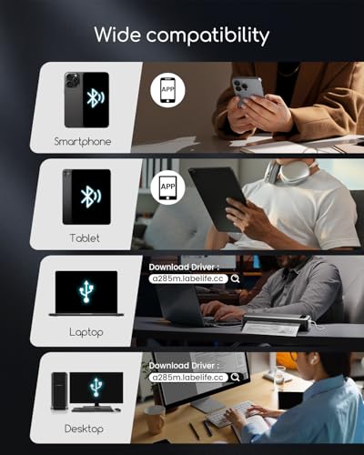 - Bluetooth wireless printer: compatible with iPhone, Android phone, iPad, tablet via Bluetooth. You can print documents, photos, web pages from your phone anytime and anywhere. You can also use the USB-C cable to connect your laptop and computer to print. (Note: laptop and computer only work with USB port, you need to download the driver first)