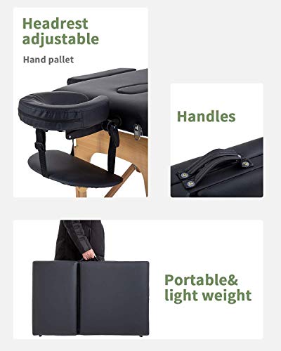 Tattoo Gizmo - Tattoo Gizmo Portable 60cm Wide Wooden Massage Bed Table for Spa Tattoo Parlor (2-Section Wooden)