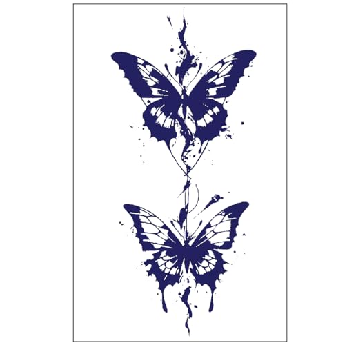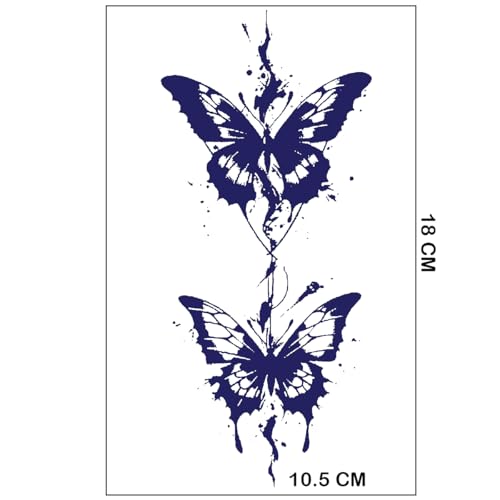 Generic - ملصق تاتو وحناء مؤقت لفن الجسم مخصص للنساء والبنات على كارت كبير، تصميم فراشتين مقاس 18 × 10.5 سم