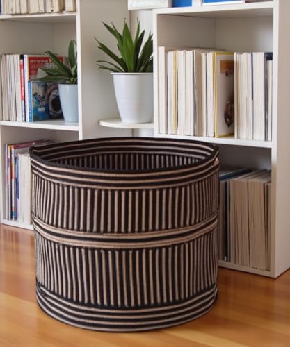 - HANDWOVEN DESIGN: Expertly crafted from 100% natural jute featuring striking black and beige stripes inspired by traditional African textile patterns.