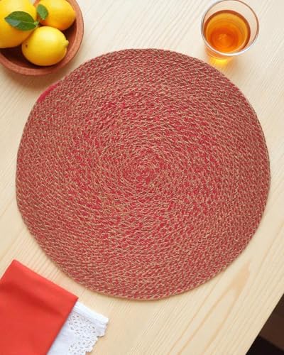 TAYET's - TAYETs Red Jute Placemat, Natural Fiber Inlay Design, Handmade Table Mat, 15 cm x 25 cm x 35 cm, Dining Room Decor (35 cm)