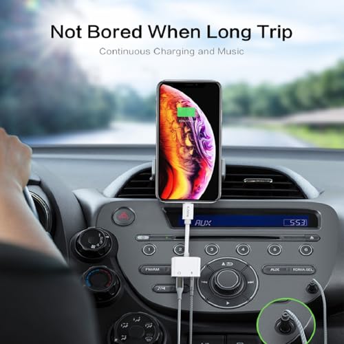 - 【AUX + Fast Charger】: The 2-in-1 charger and headphone adapter support up to 24-bit 48KHz headphone charging adapter output, ensuring stability and fidelity of sound transmission. So you can enjoy the perfect music while charging without worrying about the iPhone lovers with low battery.