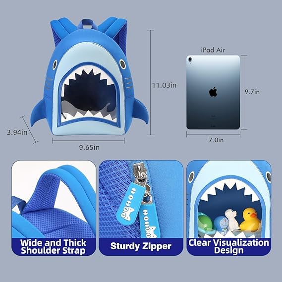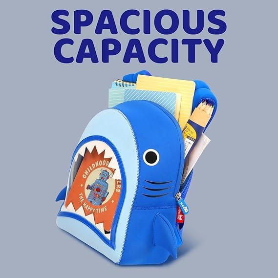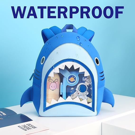Tazweeq - شنطة ظهر مدرسية للاطفال بتصميم حيوانات لطيفة مقاومة للماء مناسبة للاطفال الكبار من تزويق، مقاس M، ازرق، M