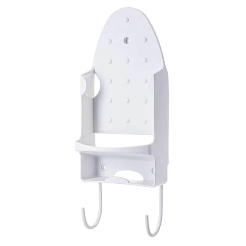 Tazweeq - حامل للمكواة وطاولة الكي يوفر مساحة تخزين ويأتي برف حمام عملي مزود بصينية مقاومة للحرارة ويثبت بسهولة على الحائط من تزويق، أبيض