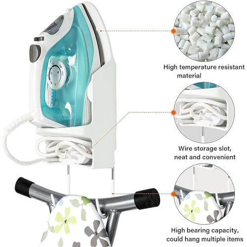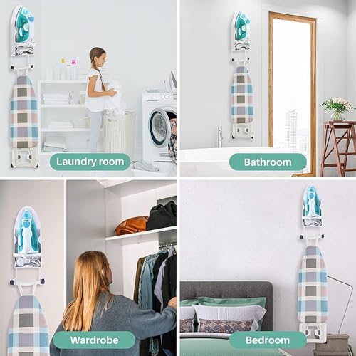 - 🎁【موفر المساحة】: زد مساحة غرفة غسيل الملابس وتخلص من الفوضى مع حل حامل طاولة الكي الذكي المثبت على الحائط. بفضل فتحة تخزين الأسلاك السفلية، يمكن طي سلك المكواة بداخلها لتوفير المساحة والحفاظ على نظافته وتنظيمه.