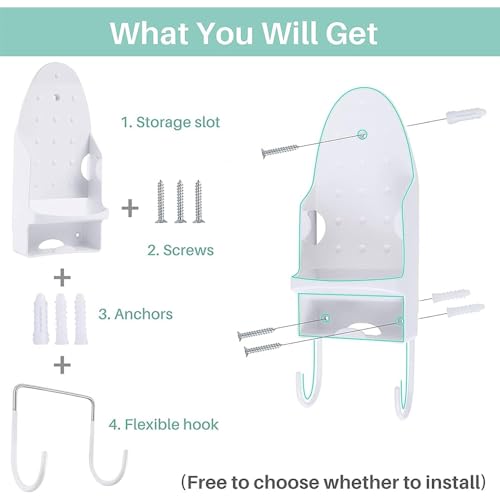 - 🎁【سهل التركيب】: يمكنك تثبيت طاولة الكي بسهولة على أي جدار أو دولاب ملابس باستخدام المسامير الثلاثة المرفقة. يتم تثبيت الخطاف ببروز فتحة المسمار الموجودة في الجزء الخلفي من الرف وهو ما يجعل إزالته مريحة.