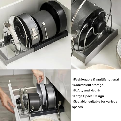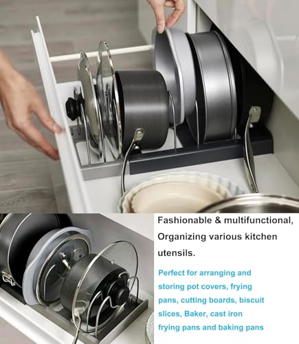 - ✅ 【موفر للمساحة】: منظم التخزين العمودي يستفيد بالكامل من المساحة العمودية داخل الخزانة، مما يجعل المطبخ أكثر تنظيمًا. حافظ على مطبخك منظمًا ومرتبًا مع منظم أغطية الأواني القابل للتوسيع ورف التخزين والذي يُعد هدية رائعة لعيد الأب.