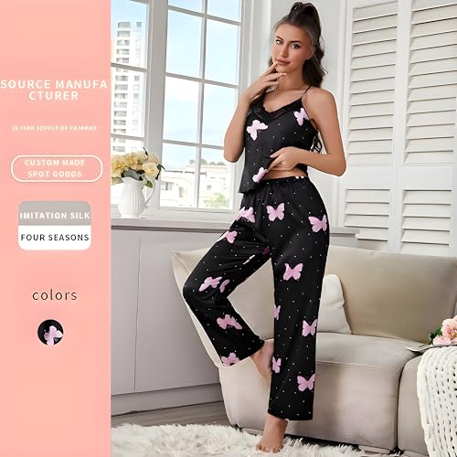 TE BIANCO - Tbianco 2 Piece Pajama Set | Off Shoulder Front & Back Suspenders Top & Long Pants | Satin Material | R22