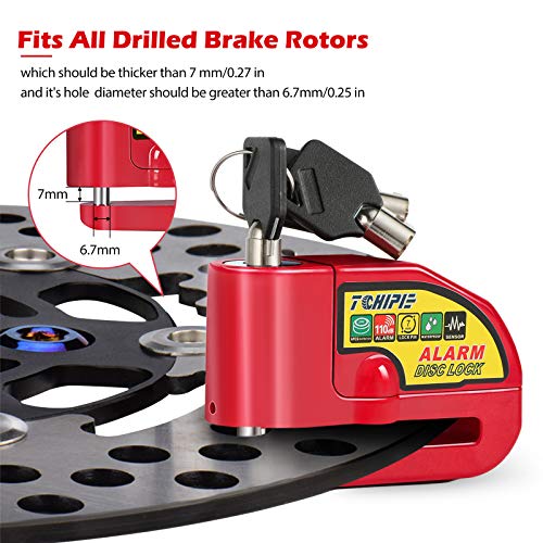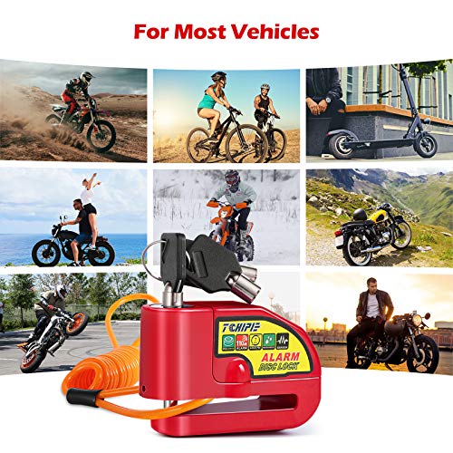 Tchipie - Tchipie Disc Brake Lock Motorcycle Alarm with 110db Alarm Sound, Theft Prevention Security Wheel Disk Lock for 7mm Brake Rotor, Heavy Duty with 5 feet Reminder Cable for Motorcycles Bicycles
