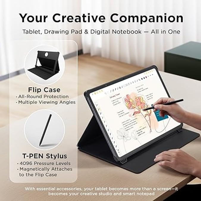 - In Box Standard: 33W Charger, Type-C cable TPU case, Flip case, Stand, T-Pen (Active), KB40 wireless keyboard