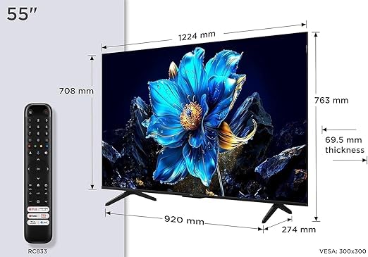 TCL - تي سي ال 55P7K 55 بوصة QLED 4K Ultra HD HDR جوجل تي في (مساعد جوجل، فري فيو بلاي، دولبي اتموس، دولبي فيجن، HDR10+، مسرع العاب 120 هرتز، وضوح الحركة (موديل جديد 2025)