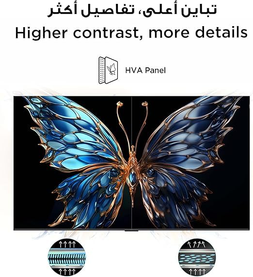 - 【شاشة HVA】 بتقنية مبتكرة. تؤكد شاشة HVA بشكل فعال على التباين الأقوى والأكثر دقة مع إزالة هالة الصورة وتداخل الضوء المحيط، مما يوفر جودة صورة مذهلة أكثر وضوحًا وتفصيلًا.