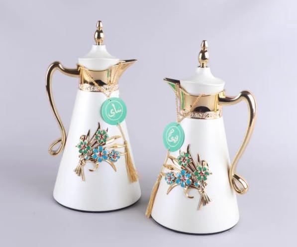 - ELEGANT DESIGN: Beautiful white thermal flask set with luxurious gold accents and decorative floral embellishments, perfect for serving tea and coffee in style