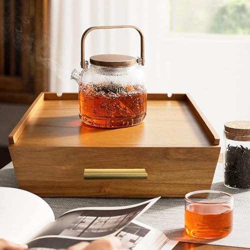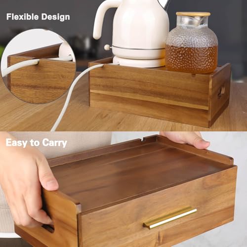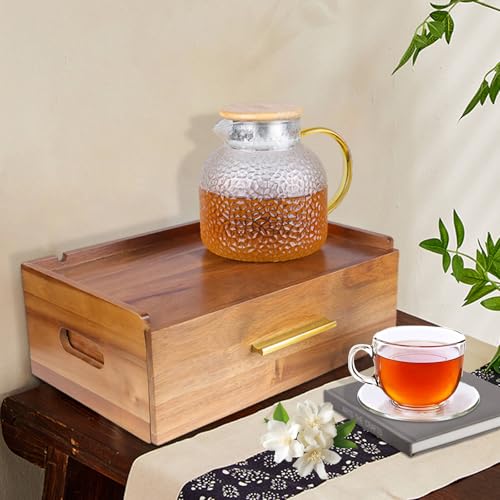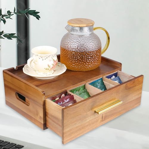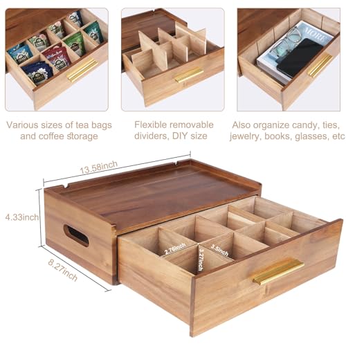 simcotic - Tea Bag Organizer, Acacia Wooden Tea Box Organizer Storage Box for Countertop, Tea Bag Holder with Drawer, Pantry Organizers and Storage Tea Station for Tea Lovers, Organizador De Te (Brown)