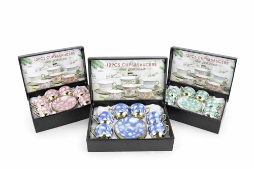 - محتوى الطقم: يتضمن 12 قطعة من البورسلين الفاين - 6 أكواب شاي مع 6 صحون متطابقة لتقديم مثالي ومتناسق