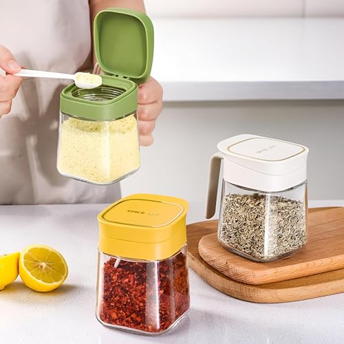 - متعددة الوظائف: حاوية توابل، برطمان توابل، وعاء توابل، كوب بهارات، منظم، أكواب بهارات بأغطية، علبة بهارات، منظم توابل. زجاج شفاف، في لمحة، ألوان جميلة، تجعلك سعيدًا أثناء الطهي.