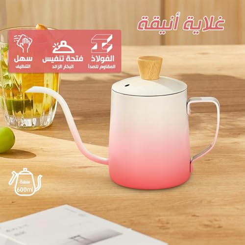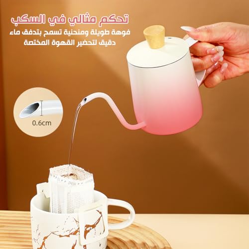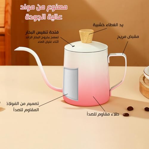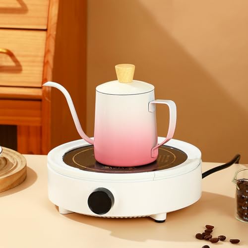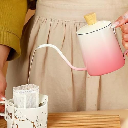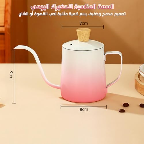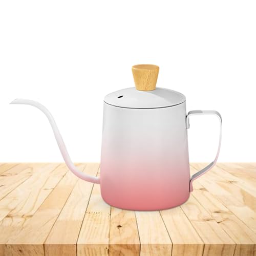 Generic - Tea Pot Stainless Steel Mini Tea & Coffee Kettle with Lid Long Narrow Spout Classic Design for Home Travel 350ml (Pink & White)