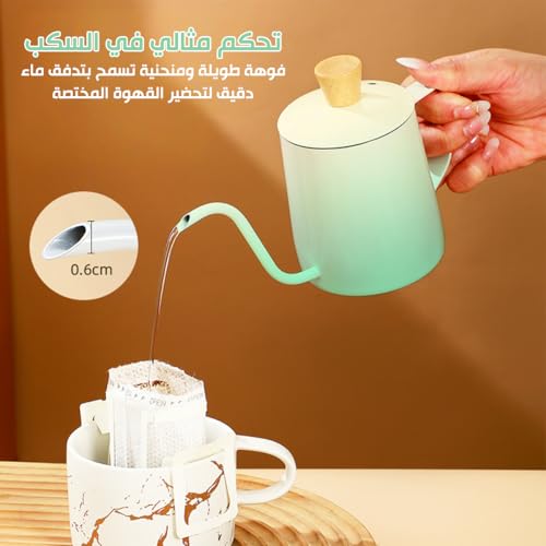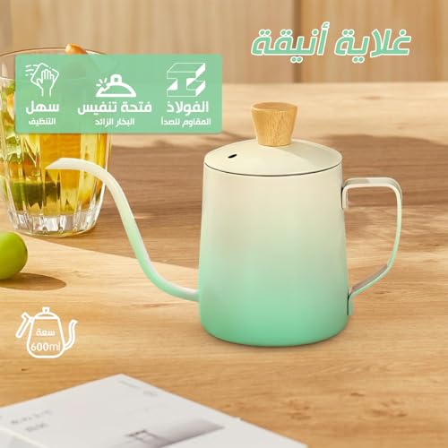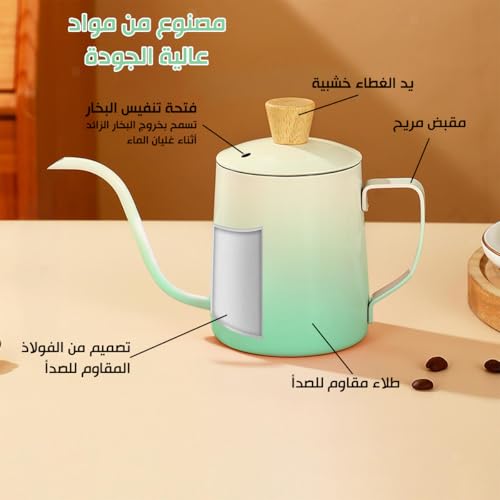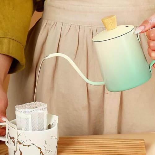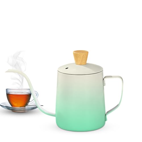 Generic - Tea Pot with Lid 350ml - Mini Stainless Steel Tea Pot, Coffee Kettle with Long Narrow Spout, Classic Design for Home, Office and Travel, Portable & Lightweight, Classic Drip Pour Over (Gradient Green)