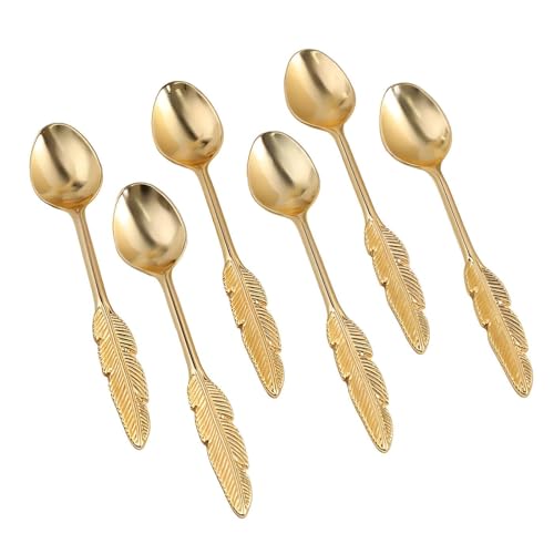 Generic - Tea Spoon Set - 6-Piece Stainless Steel Set with Feather Handle for Spices and Sweet Treats (1 باكت)