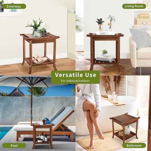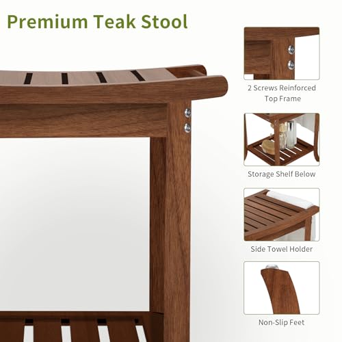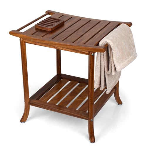 - مصنوع بحرفية من خشب الساج الفاخر: مصنوع من خشب الساج الطبيعي بنسبة 100% من مصادر مستدامة، يجمع مسند القدم الخاص بنا بين الأناقة والمتانة. تم تصميم هذا المقعد عالي الجودة ليتحمل ظروف الحمام الرطبة دون الاعوجاج أو التشقق.