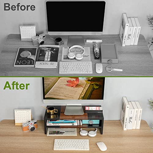 TEAMIX - TEAMIX 2 Tiers Desktop Monitor Stand Riser 20 Inch Printer Stand with Storage Small TV Riser Laptop Wooden Desk Organizer Shelf Bookshelf Maple (Black+Brown, 2 Tiers)