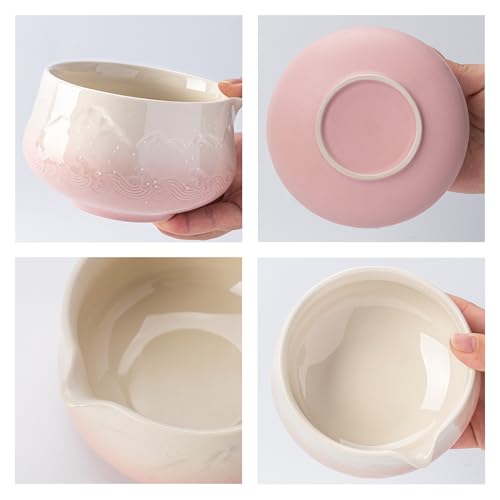 TEANAGOO - TEANAGOO 7 Pcs Matcha Whisk Set, Pink Matcha Set, Ceremony Matcha Powder Kit,Matcha Tea Set for Making Latte,Matcha Whisk Set and Bowl with Scoop&Sifter,Fuji Design Ceramic Bowl,Gift for Matcha Lovers