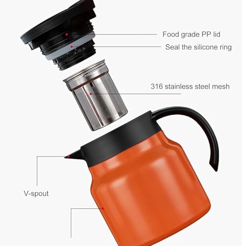 - Stainless Steel Tea Kettle: 32oz insulation teapot is made of high hardness stainless steel for better insulation and more durability. Easy to Clean: Teapot is detachable design, stainless steel teapot with removable strainer is more convenient to clean, 360° cleaning limescale nowhere to hide.