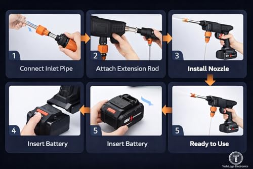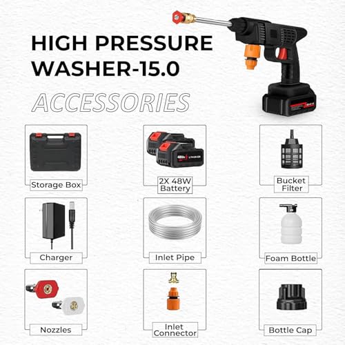 TECH LOGO ELECTRONICS - (Double Battery) Cordless Portable Wireless Pressure Washer Gun 48V 12000mAh High Pressure Water Gun for Car Wash and Bike Cleaning with Adjustable Nozzle and 5M Hose Pipe
