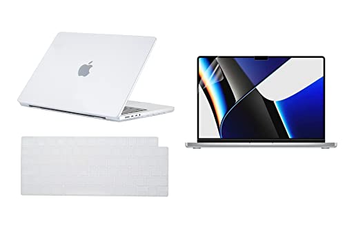 TECHNA - مجموعة حماية لجهاز ماك بوك برو 14 موديل A2442 M1 برو من تكنا، حافظة شفافة من الياف الكربون + غطاء حماية للكيبورد باللغة الاسبانية + واقي شاشة، بولي كربونات