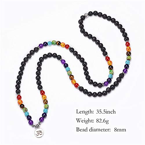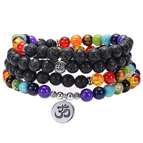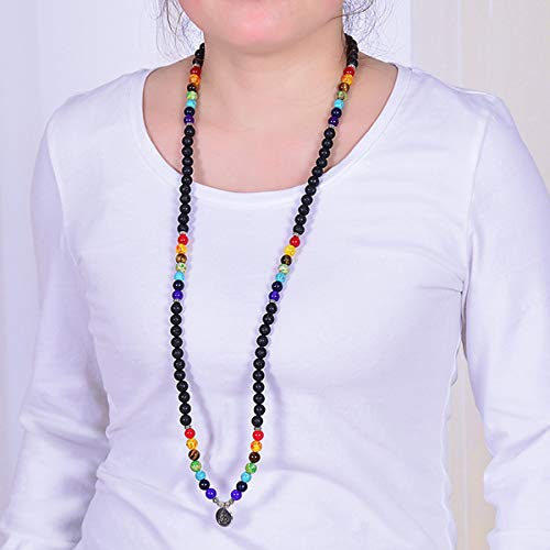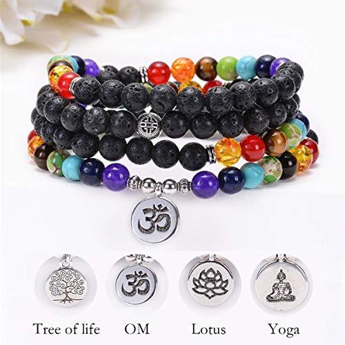 Techson - 7 Chakra Bracelet, 108 Mala Beads Gemstone Wrap Bracelet, 8mm Turquoise Buddhist Prayer Necklace with Tree of Life Pennant, Stone,