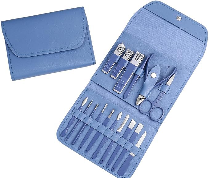 TECHZONE - TECHZONE 16-in-1 Manicure Set – Professional Nail Care Kit for Men & Women with Stainless Steel Nail Clippers, Scissors, Tweezers & Grooming Tools in Portable Travel Case (Blue)