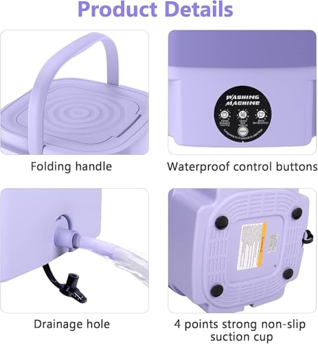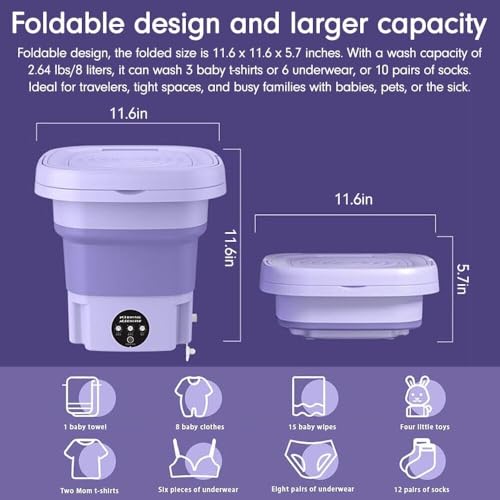 TECHZONE - غسالة صغيرة قابلة للطي محمولة لملابس الأطفال والملابس الداخلية والغسيل الصغير، قابلة للطي ومناسبة للسفر مع تحكم باللمس للسكن الجامعي والمركبات الترفيهية والاستخدام المنزلي من تيكزون (أرجواني)