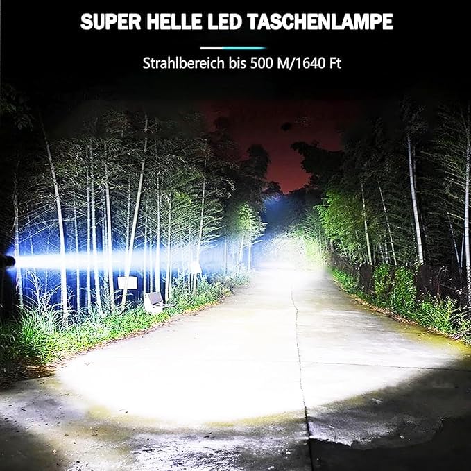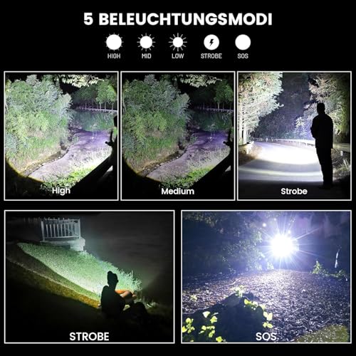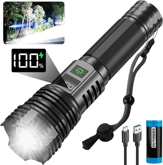 TECHZONE - مصباح يدوي تكتيكي ليد قابل لإعادة الشحن وقابل للتكبير بإضاءة فائقة - شحن USB-C، بـ5 أوضاع إضاءة وشعاع 1000 لوكس، من مادة الألومنيوم من فئة الطائرات من تيكزون